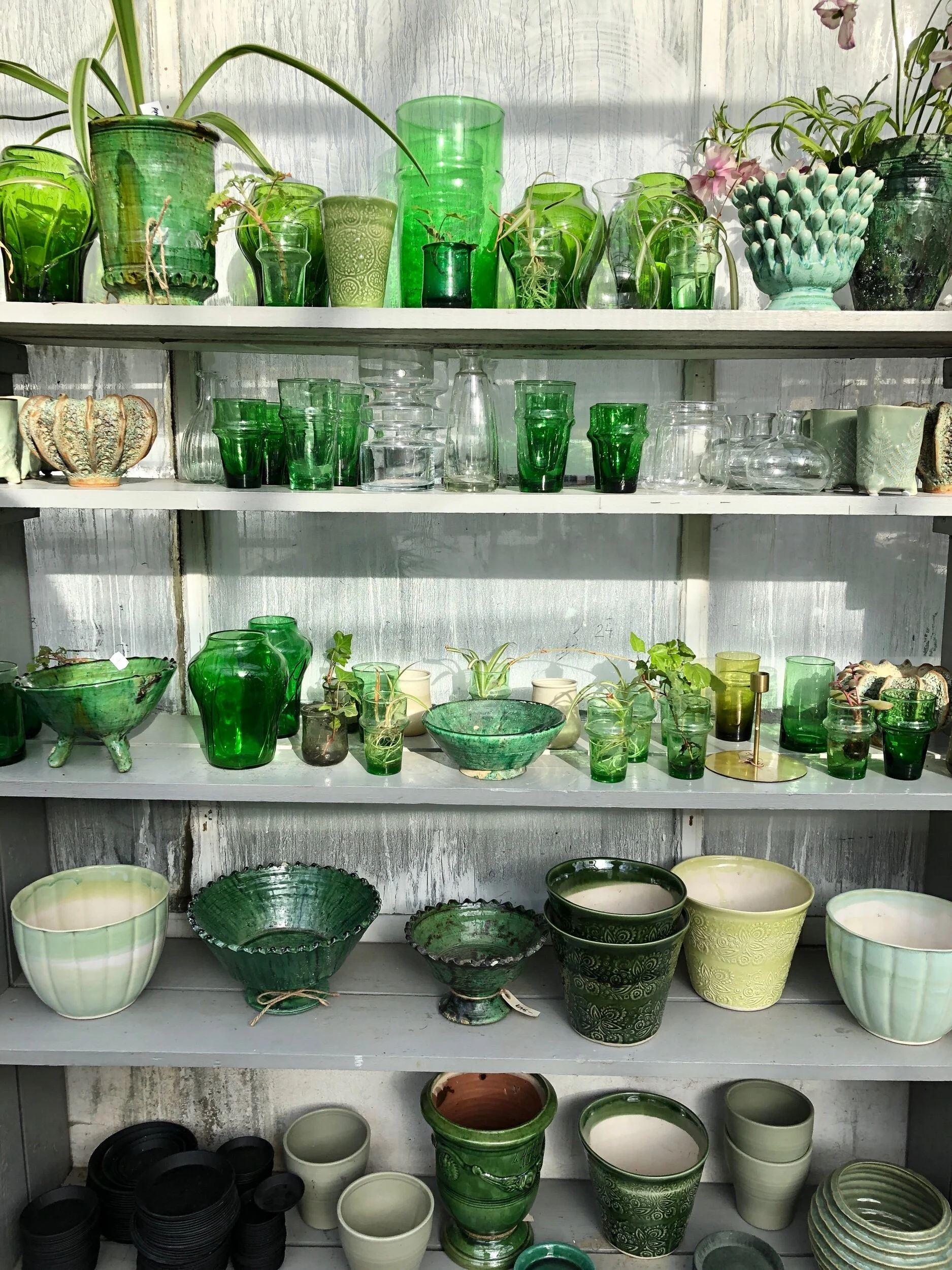 Och sist men inte minst, grönt glas och grönt porslin. Blev inspirerad och gjorde grön glasyr på mina saker från keramiken. Det blev såååå fint. Ni får se resultatet i nästa vecka! Lite grönt glas också kanske, på någon loppis?