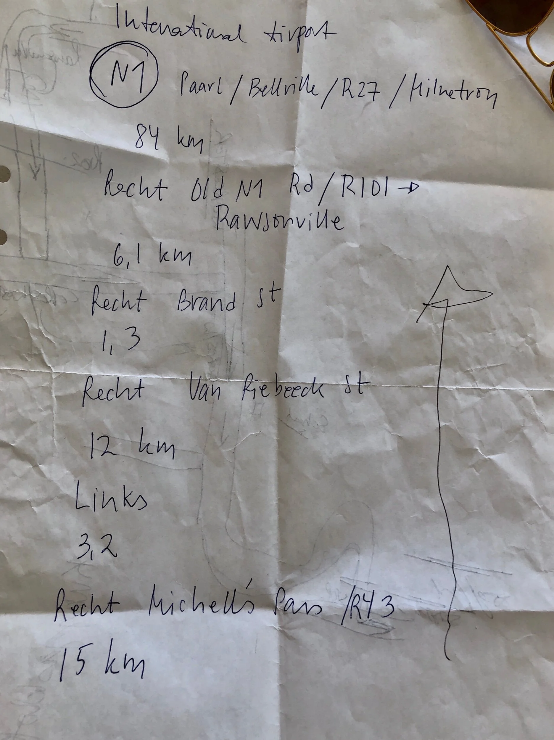 Så hur gick det då? Vi kom fram, hehe men det tog 5 timmar, inte 1,5 timma.. Vi åkte fram och tillbaka på samma väg tre gånger. Vi ringde våra kompisar som gav oss fel anvisningar, igen. Vi frågade en vakt på ett högriskfängelse. Han var supertrevlig och ritade en karta åt oss. Vi kom till Ceres, berömd för sina juicer. Vi körde fram och tillbaka över Michells pass och jag lärde mig köra bilen riktigt bra! Vi grälade faktiskt inget, bara lite irritation, men tja i detta läget HELT normalt. Och när vi kom till den förmodade avtagsvägen fanns det inte ens någon vägskylt, så inte konstigt att vi körde förbi, se ovan. Så kontentan är att maken och jag var överens om att våra kompisar gav oss dåliga instruktioner. Eller vad tycker du? Vi hörs! Ciao Catharina