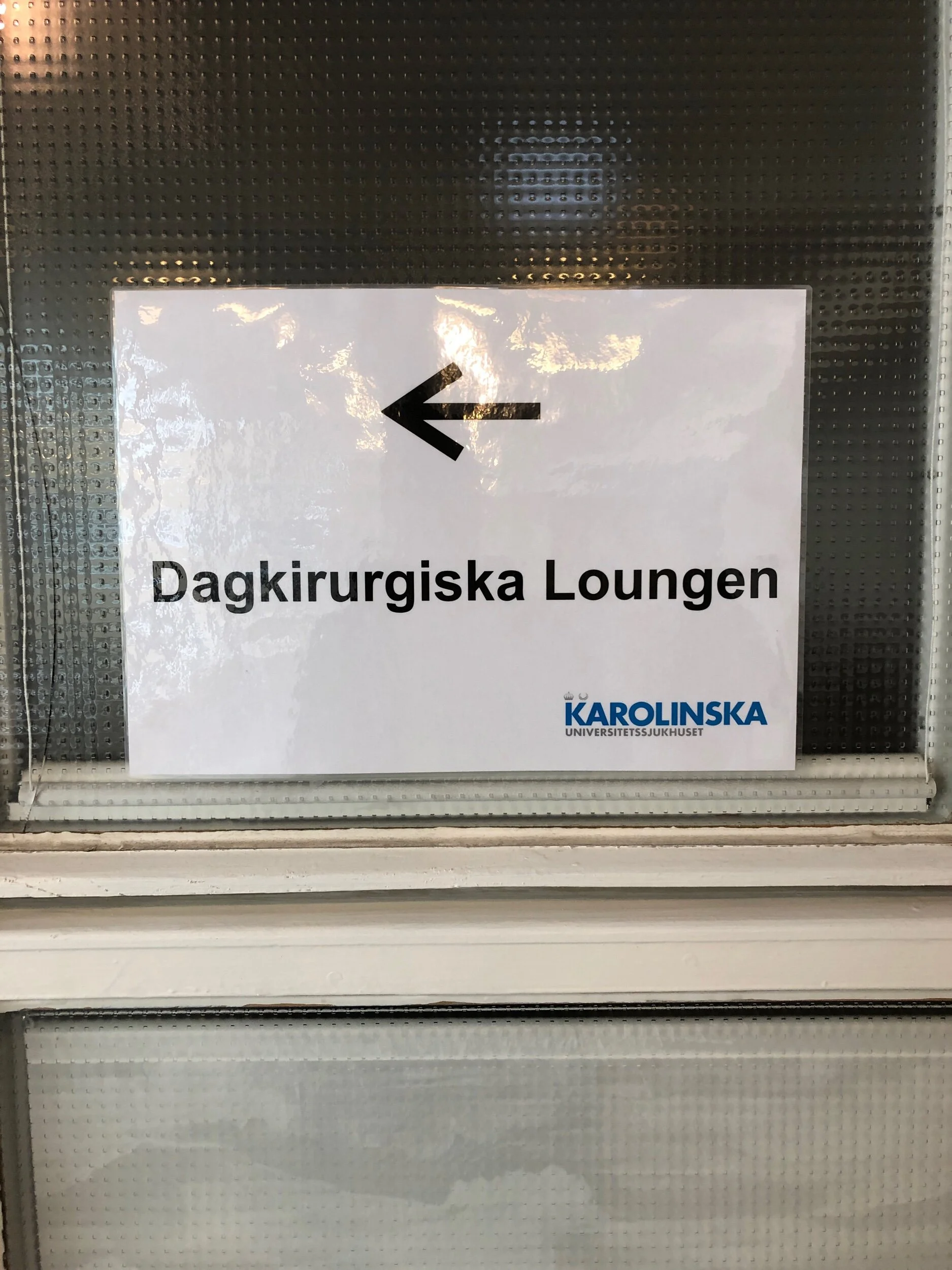 Dagen för operation skulle jag vara där 07.00. På gamla Karolinska. Här var det övergivet och lite rysk sjukhuskänsla.. Och namnet Loungen… ja, vem som hittade på det namnet verkar ha haft fri fantasier. Så långt från en Lounge som möjligt. Men just ja, detta var en dagkirurgi så ingen övernattning på sjukhuset, vilket var skönt.