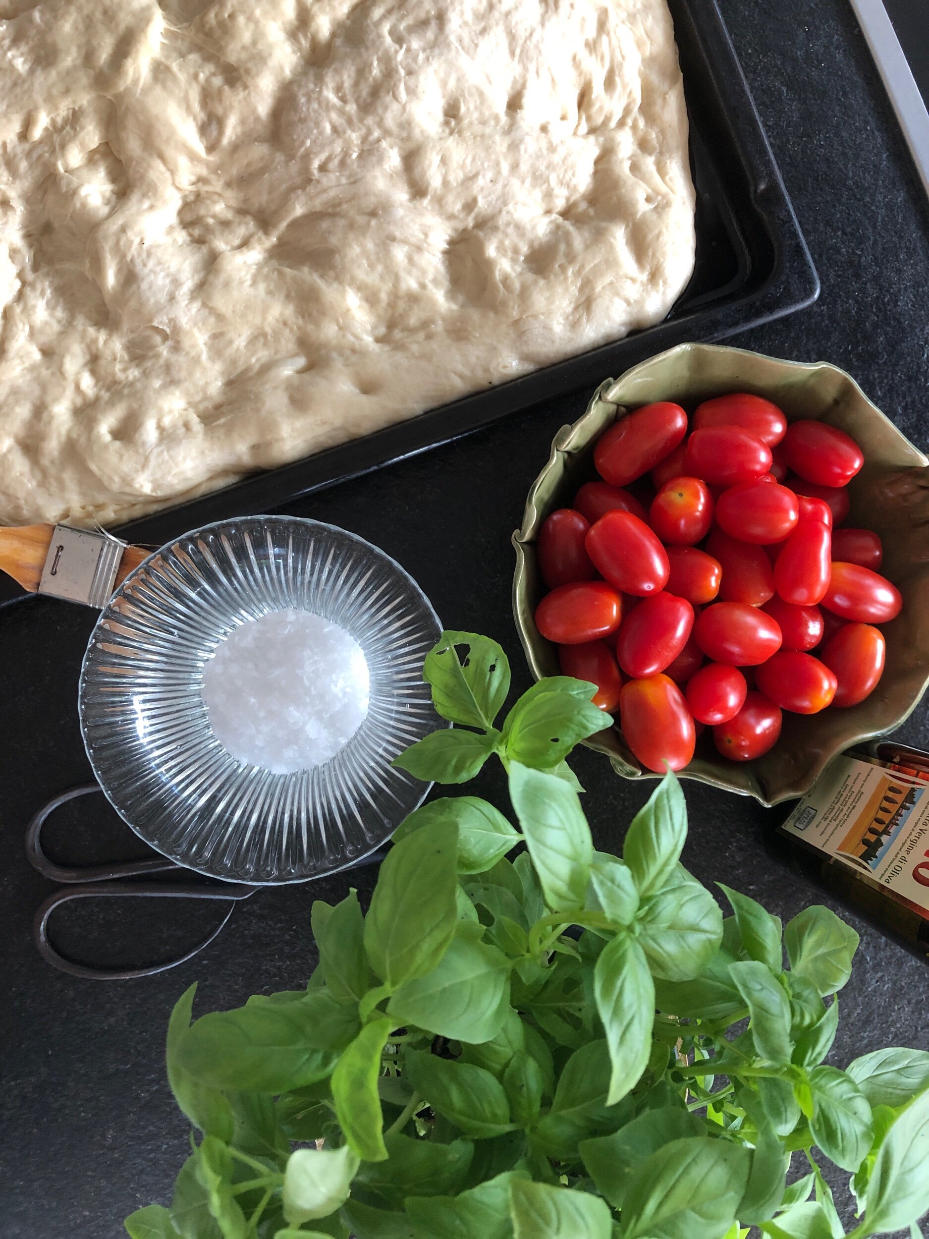 Detta enkla bröd passar perfekt nybakat att bjuda på. Tar lite tid att göra men är superenkelt. Vi har i sommar haft det som tillbehör till chark- och ostplatta när vi har haft gäster över på enklare tilltugg. Och jag lovar focaccian går åt, fort. Har bakat med Leilas recept och smaksatt med olika tillbehör. Kolla recept här!