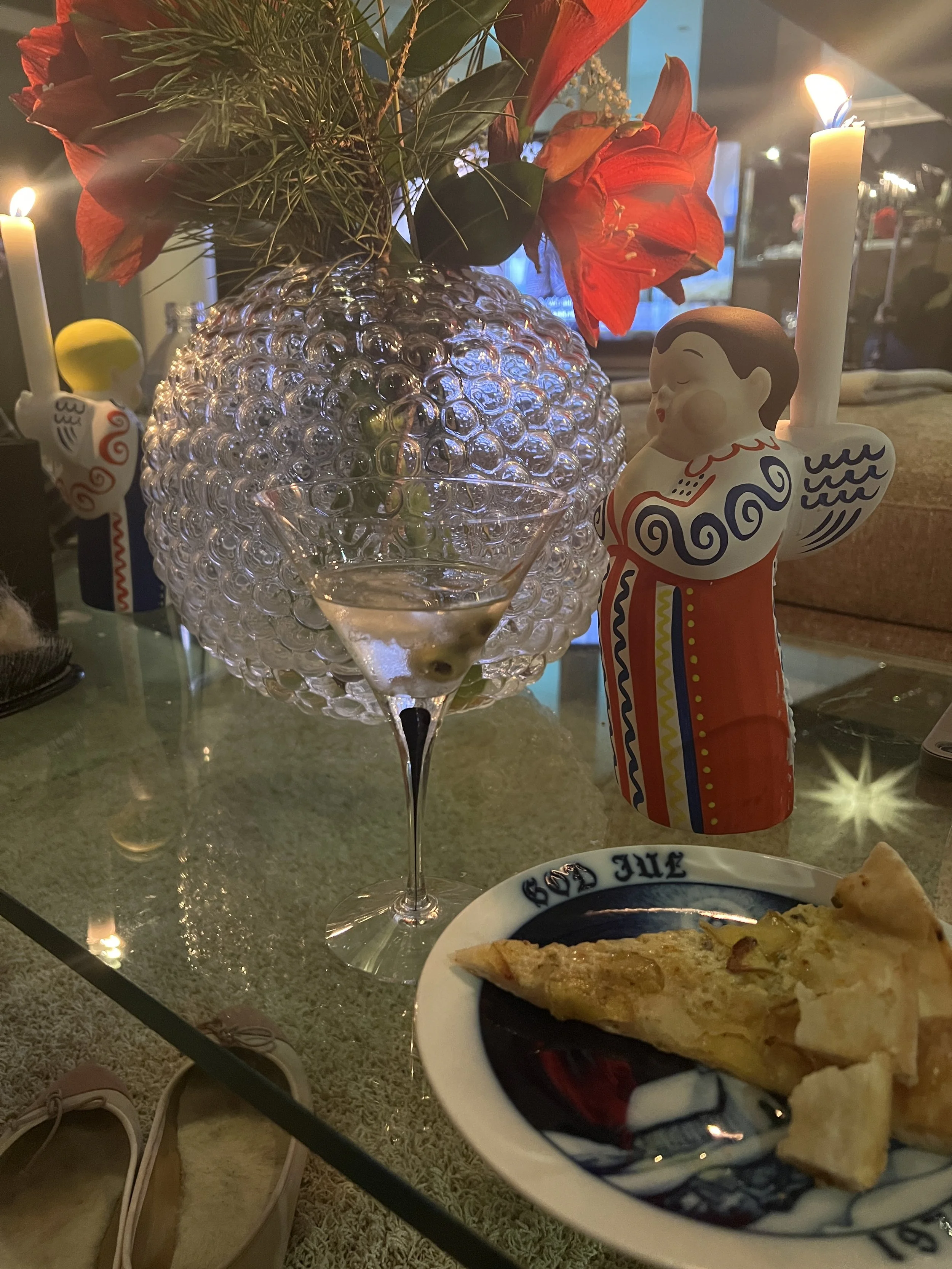 Hej, dagen före dopparedagen. Vi myser med en Dry Martini, en bit hemmagjord pizza Bianco och lite juldekorationer. Mys. Hoppas du har det fint! Vi hörs. Ciao Catharina