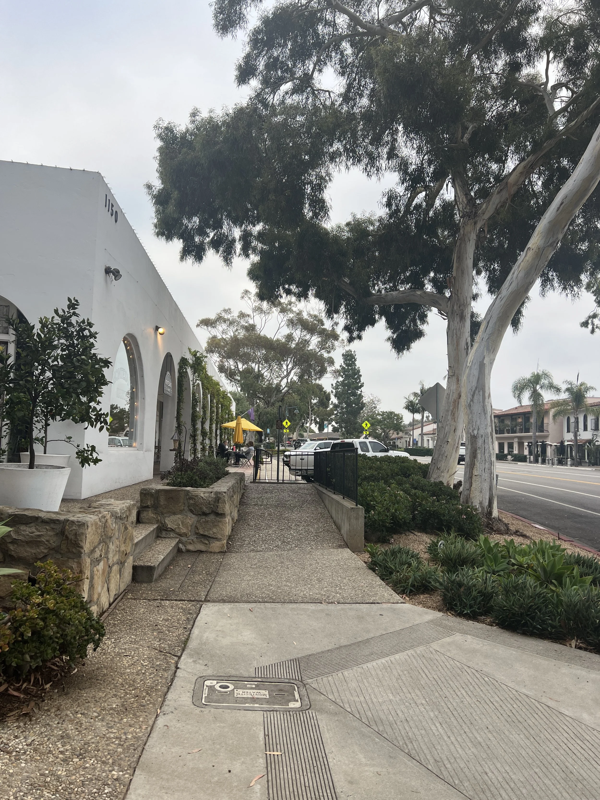 Montecito är ett välbärgat kustsamhälle i Kalifornien som ligger mellan Santa Ynez-bergen och Stilla havet. Det är känt för sin naturliga skönhet, exklusiva egendomar och lyxiga livsstil. Här är den lilla huvudgatan; Coastal Village Road. Det är här alla butiker och restauranger ligger. Och visst märker man att detta är ett ställe för folk med pengar. Husen, tomterna, bilarna, människorna… Det var bara att go-with-the-flow och njuta.