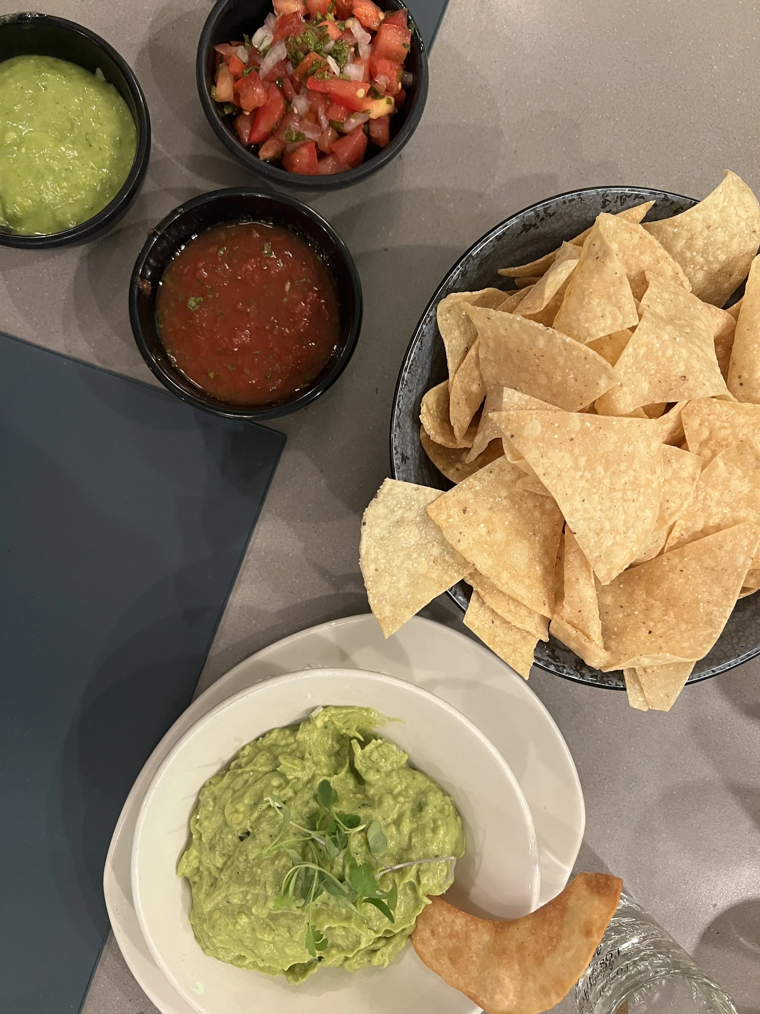…and ate chips (as they say here) with salsa and avocado at one of the Mexican restaurants…