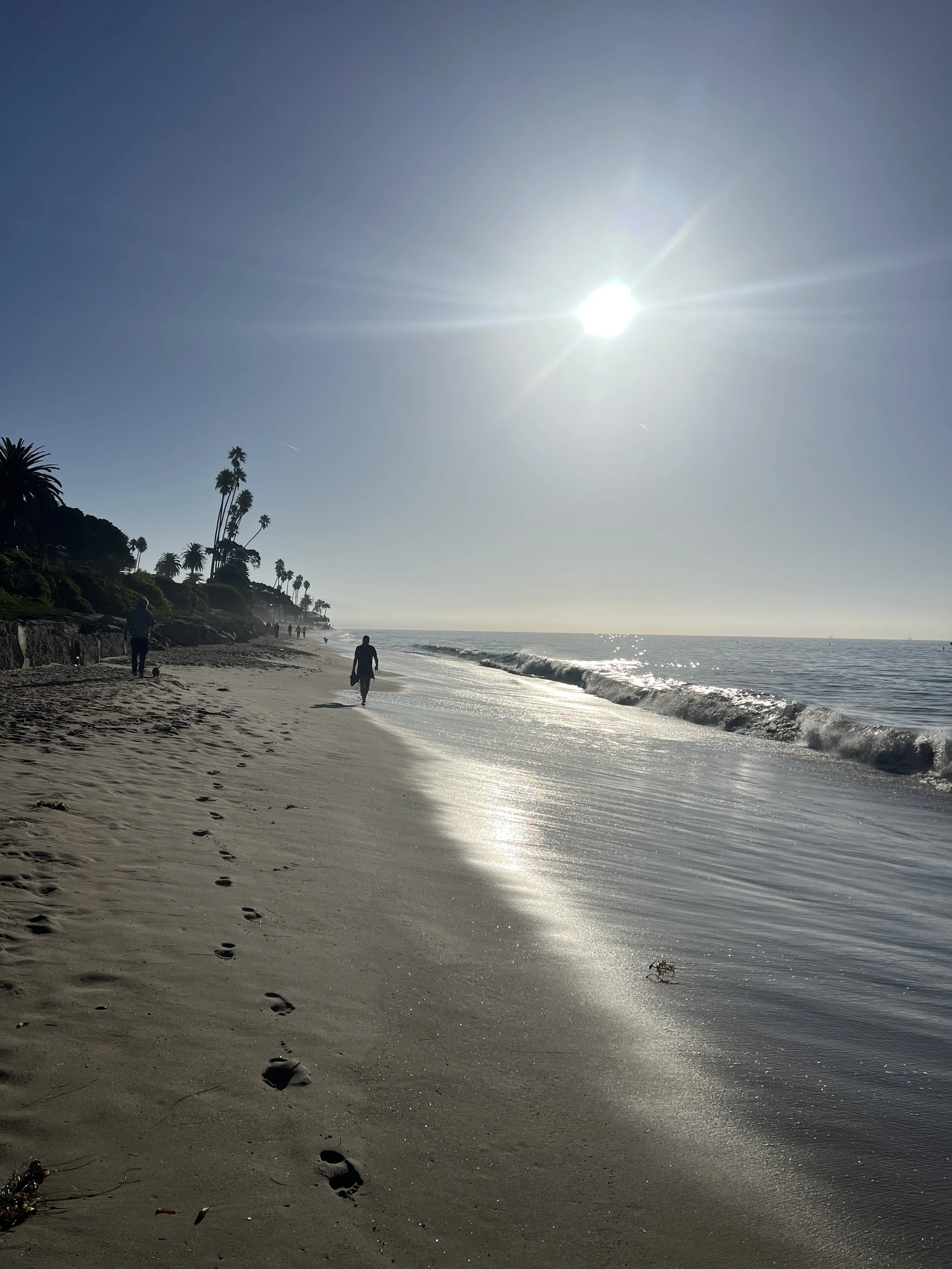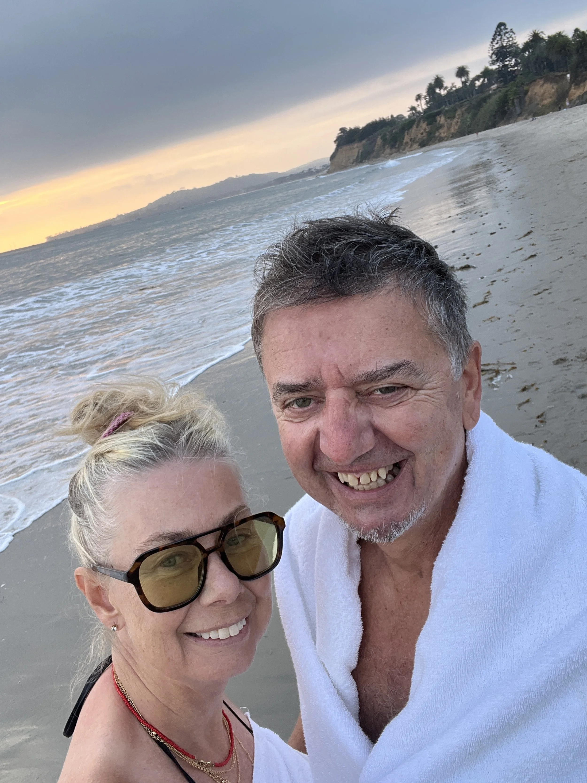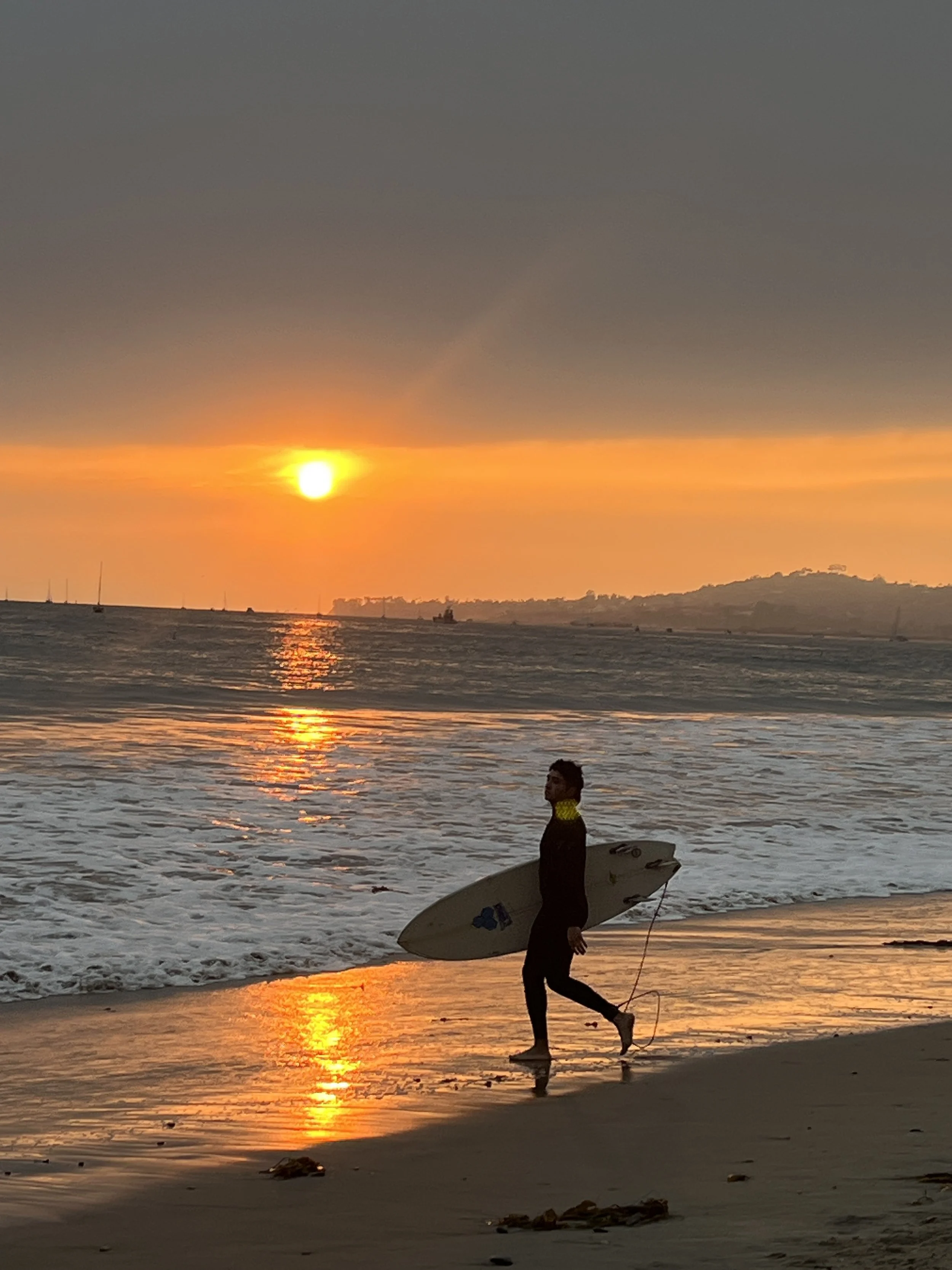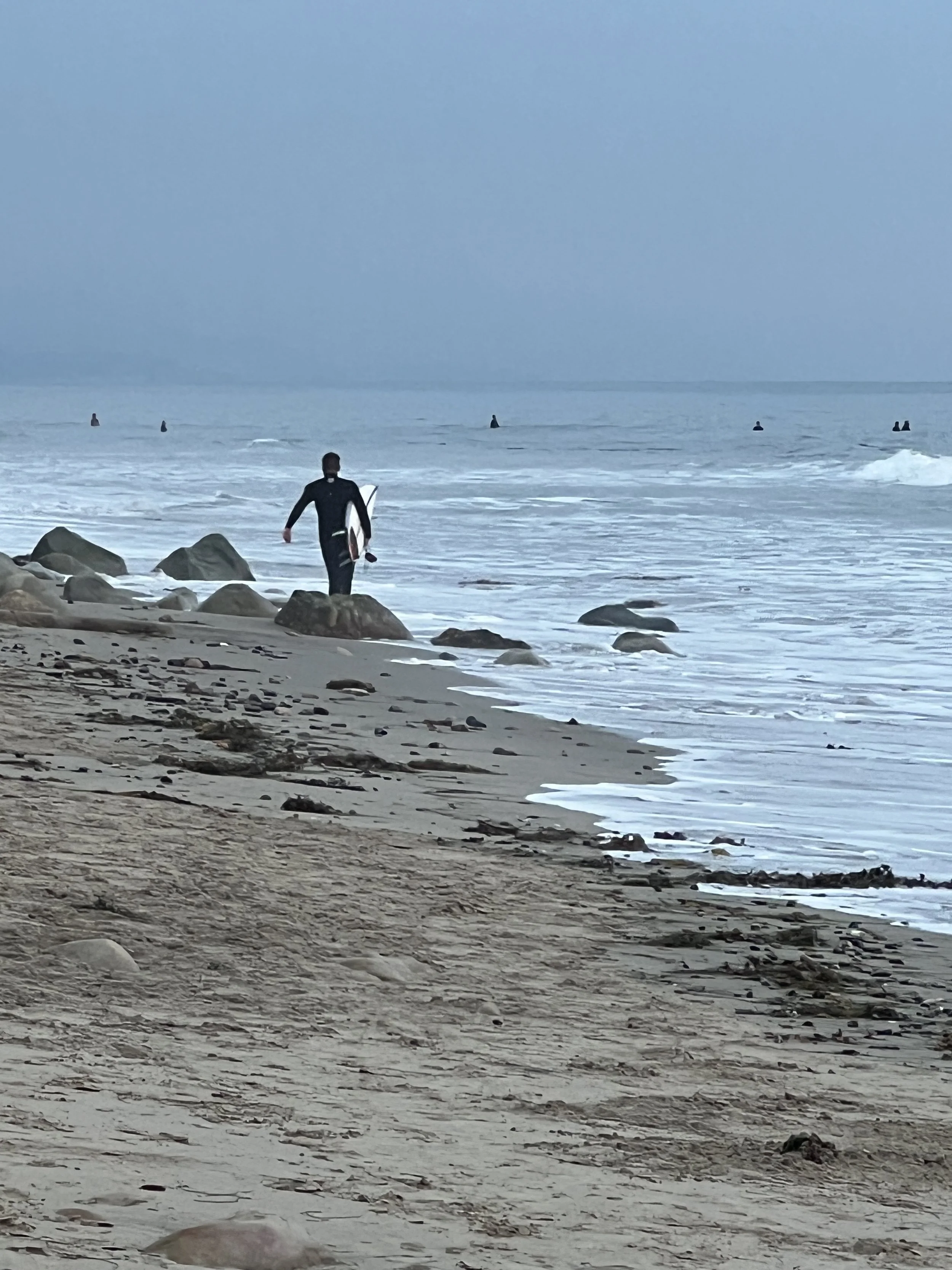 On our last night in Montecito, my husband and I went down to the Pacific Ocean one last time to swim, or maybe better said, take a quick dip. And to watch the sunset and all the surfers. We couldn't help ourselves and stayed until it got dark.