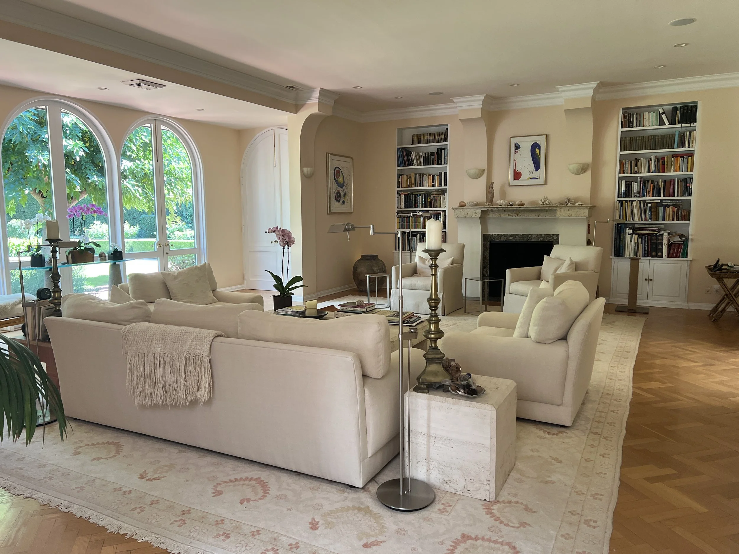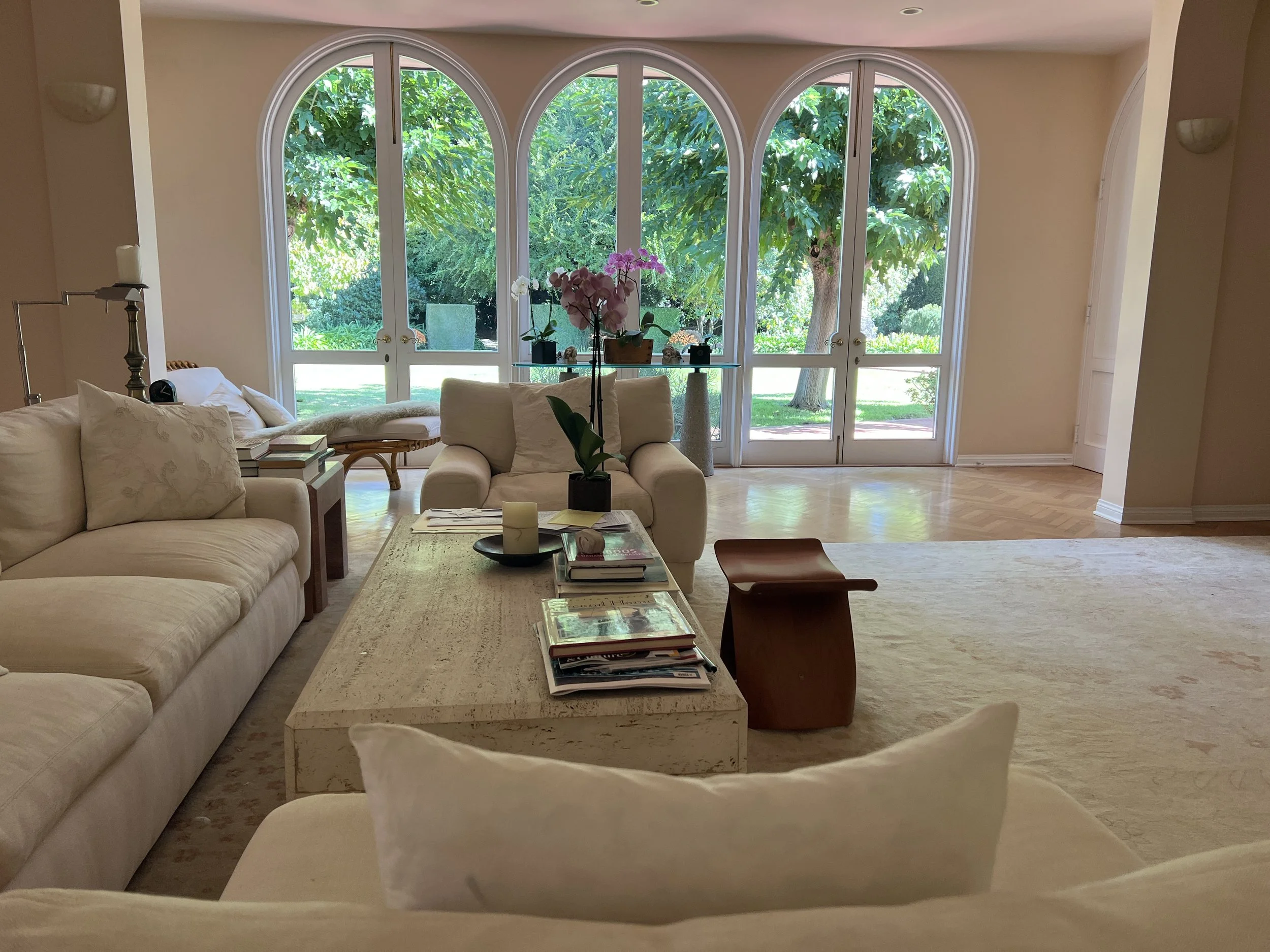Vi spendera mycket tid här i deras vardagsrum, med att sitta och prata, skratta och bara njuta. Och i den vackra trädgården…