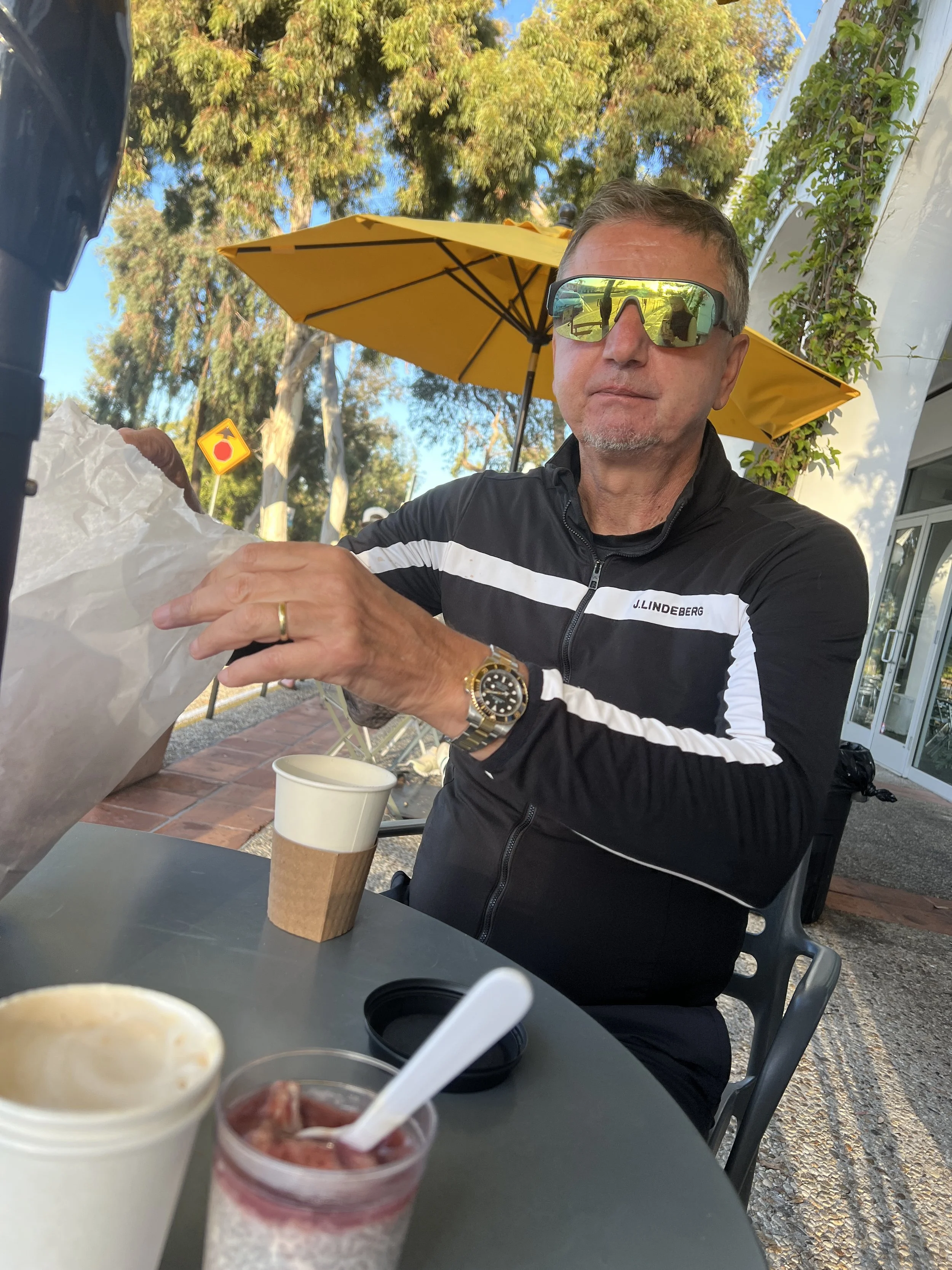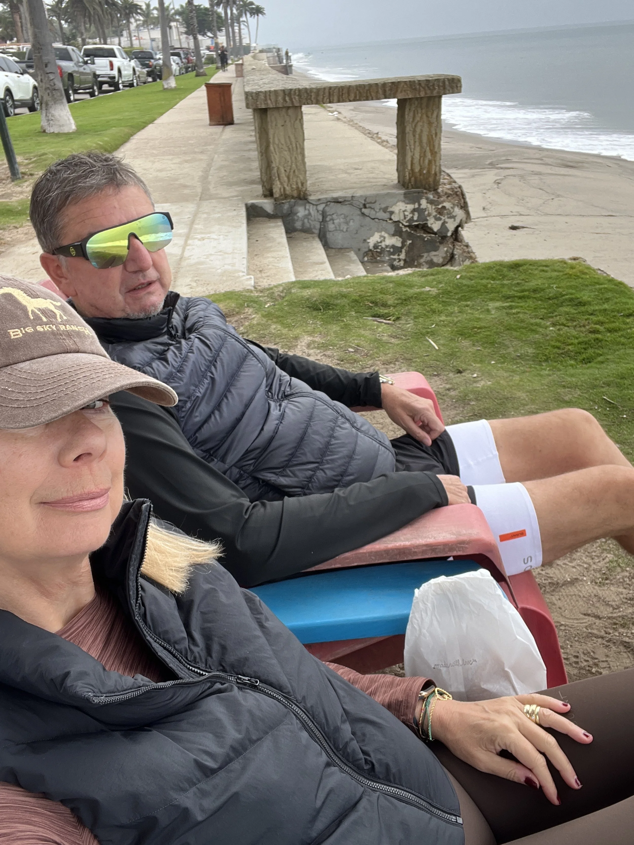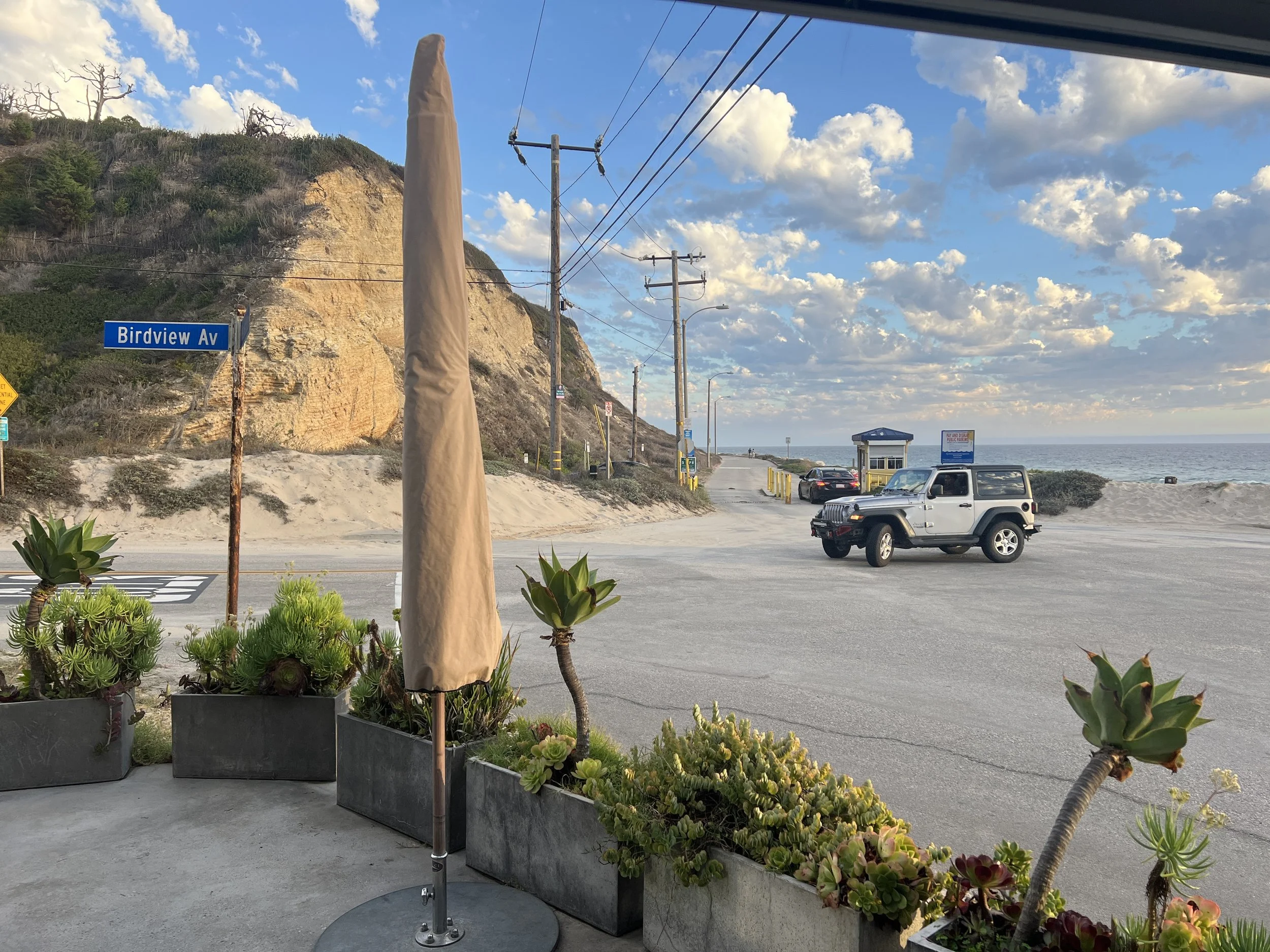 …so we went via Malibu and stopped at The Sunset by the ocean. The restaurant looks more like a surfer's hangout and it certainly is. And we chose it on recommendation… We drove the Pacific Coast Highway (PCH) which took us through a large part of where the fire last spring raged. All the houses that were no longer there, the work along the PCH to prevent landslides and we saw a bit of The Palisades, but this part of LA is more up in the mountains. So sad to see the destruction of both houses, buildings and the lives of many people.