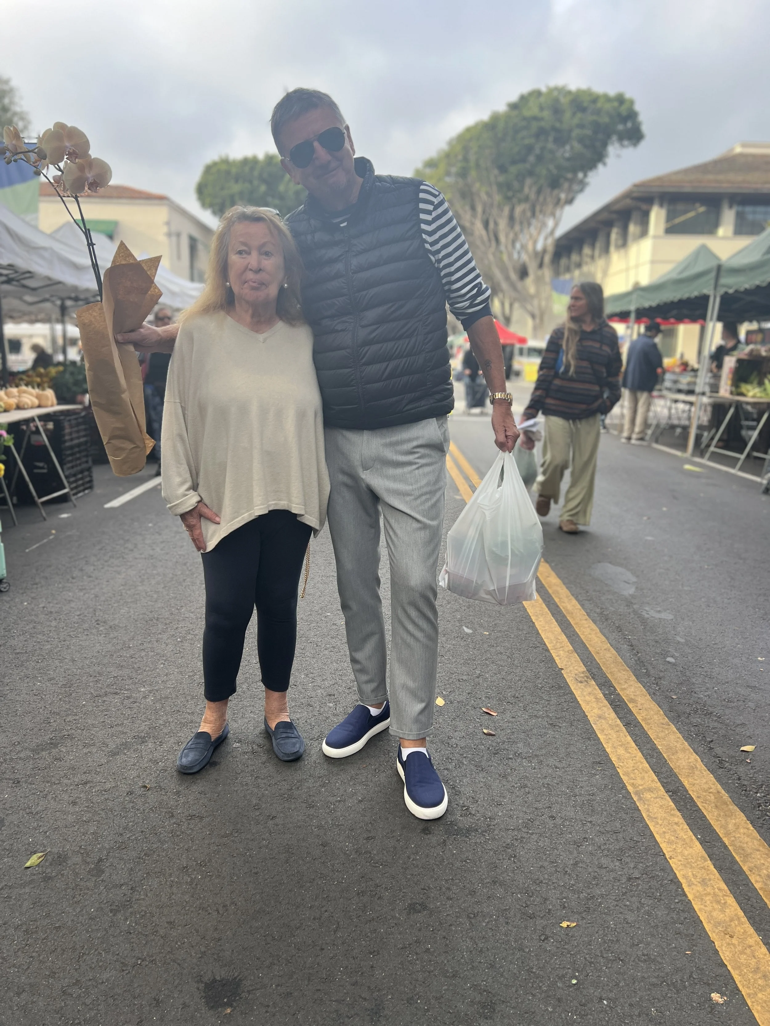 We also visited the Farmers Market two Saturdays in Santa Barbara. Here is Lore's husband after we bought the organic strawberries from Harry’s Berries. So good! Both worth the price and going here early on a Saturday in order to buy a couple of boxes before they run out.