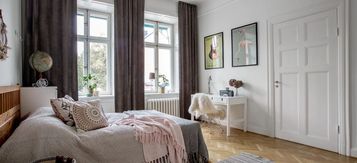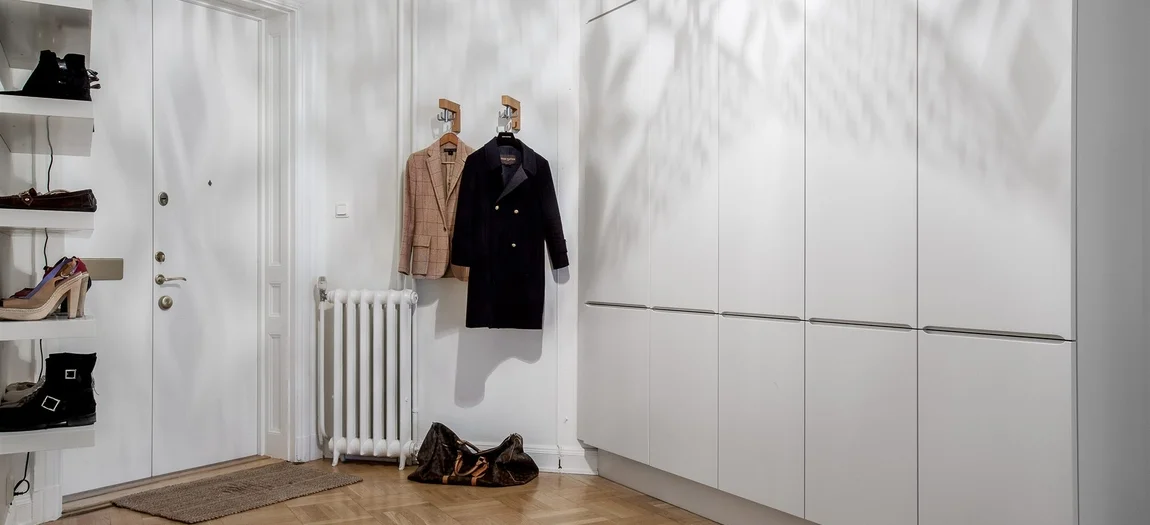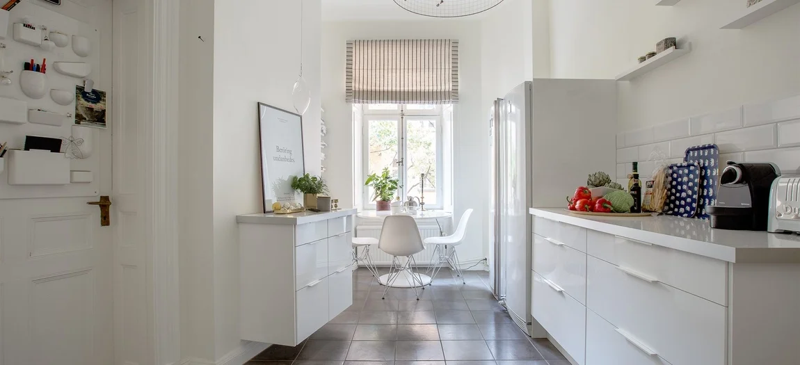 Godmorgon! Här är nu lite fina bilder på vår våning här på Birger Jarlsgatan. Just nu ser det INTE så här fint ut. Mest saker överallt och massa massa flyttkartonger. Vi flyttade in här för drygt fem år sedan och vi renoverade våningen genomgående och vi målade om alla väggar, tak och snickerier, slipade golven samt bytte ut hela köket och stora badrummet, inklusive golv. Fortfarande helnöjd med resultatet!
