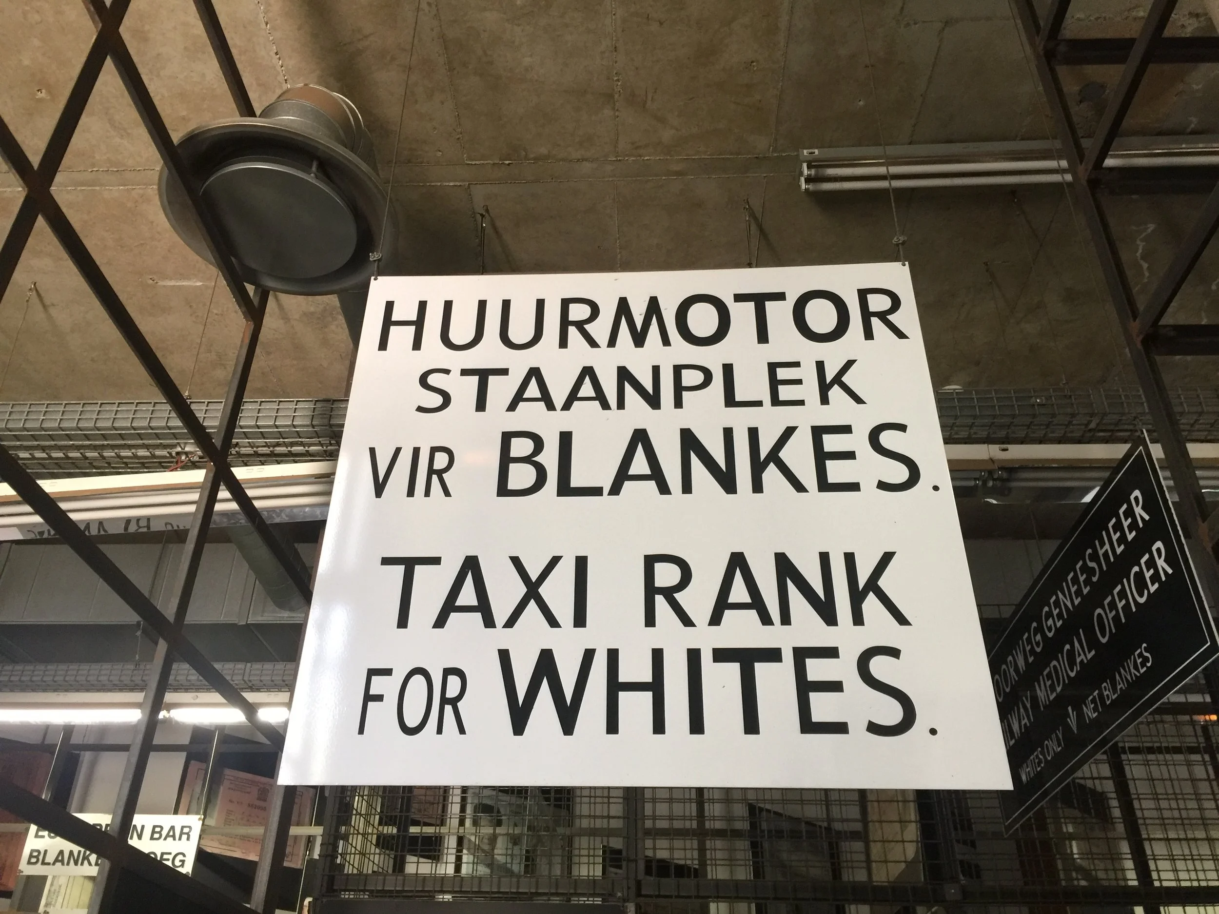 De hade använde gamla skyltar på musumet för att visa hur det var under apartheidtiden. Skrämmande.