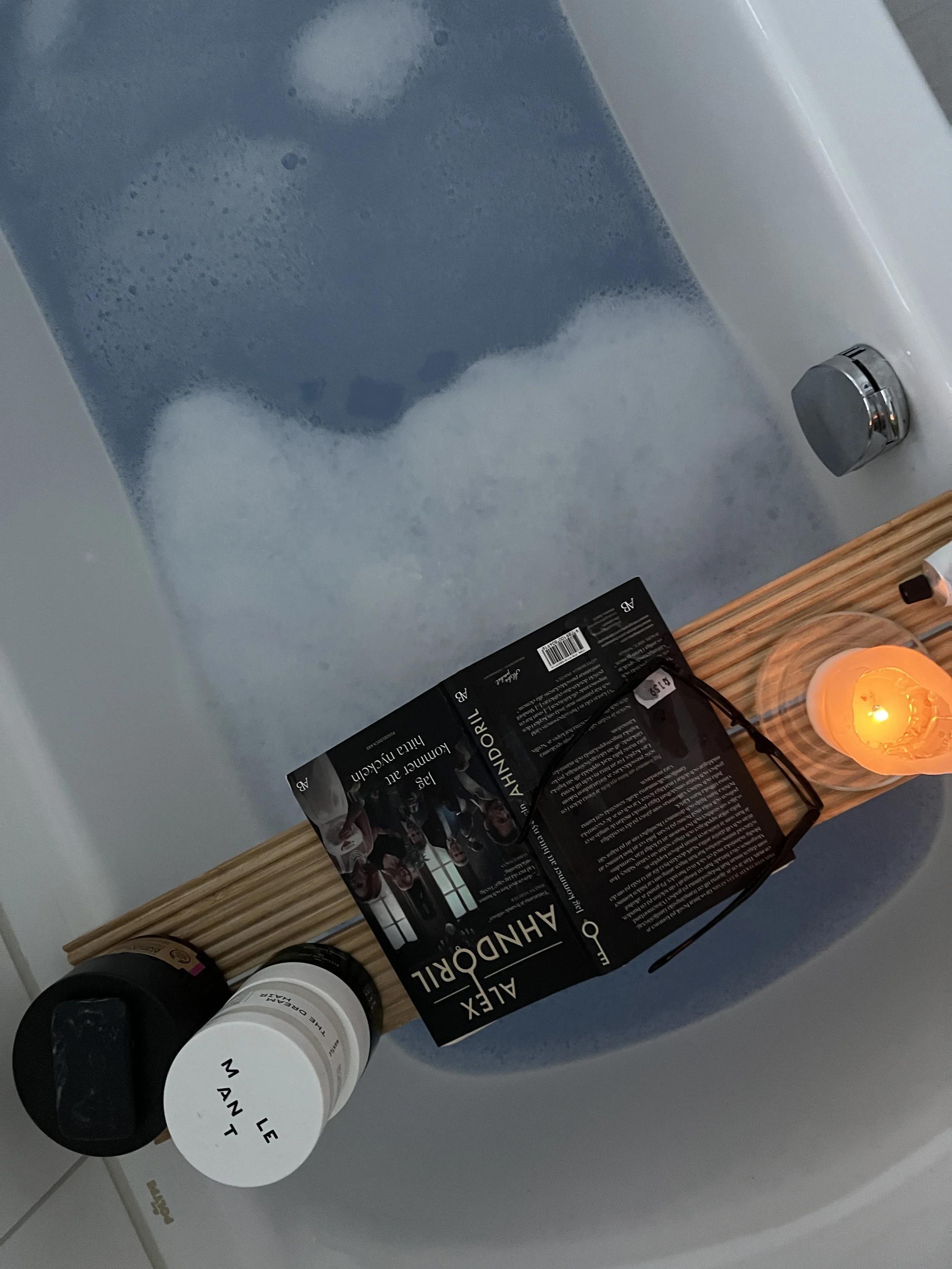 18.30 Time for a bath and today I read a so-called puzzle detective, not of the highest quality, but it's interesting enough for me to finish reading it.