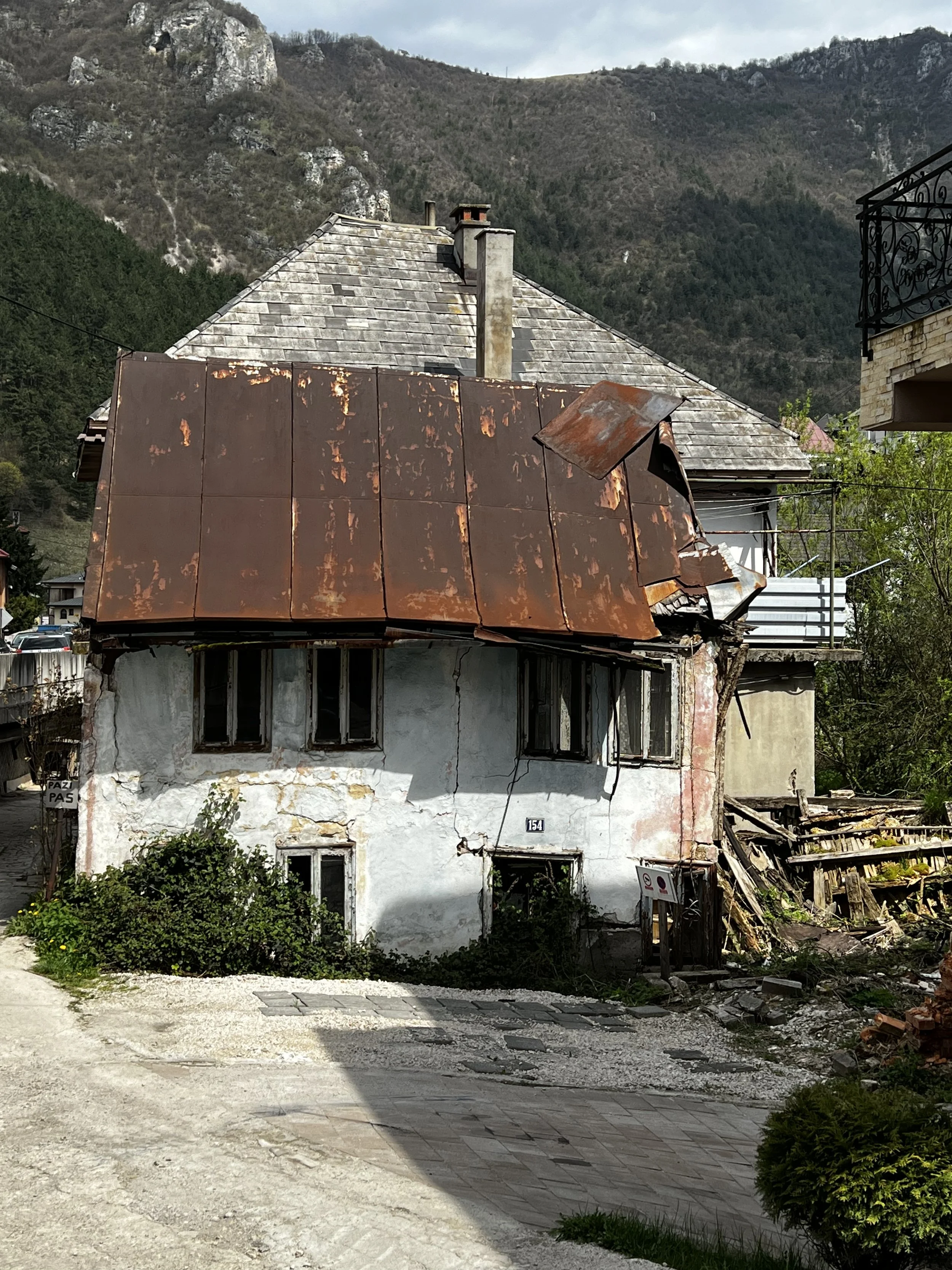 Ena sidan av Bosnien. Fortfarande spår av inbördeskriget på 90-talet. Många platser, ställen och hus är återställda men inte överallt. Visa saker syns fortfarande, som granatsplitter och kulhål. Vissa saker ser man inte såsom t.ex. minor i marken, dessa måste man ha koll på var de är. När jag var här för första gången för knappt 17 år sedan var kriget närvarande i alla samtal. Alla som man förlorat, allt som blivit förstört. Denna delen av Bosnien var också mycket krigshärjat, och då endast drygt 10 år sedan kriget slutade och forna Jugoslavien upphörde. Idag kommer kriget upp kanske ett par gånger och nu kanske mer utifrån allt som man hade innan kriget. Lite som det glada 80-talet.