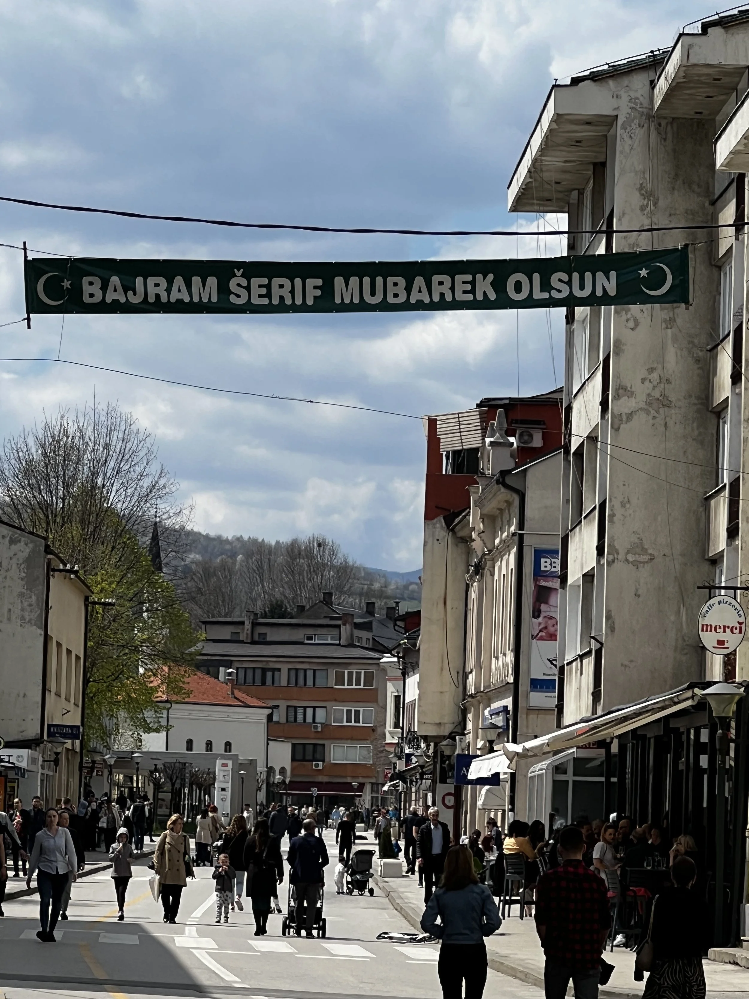 I torsdags när vi kom var det sista dagen på ramadan på kvällen började man fira att fastemånaden var över. Här firar man det med fest, Bajram, i två dagar och det mesta är stängt. Jag hade sett fram emot att se hur firandet gick till men det var lugnt på gator och torg. Man firar mer lugnt numera och mer med familj, släkt och vänner hemma.