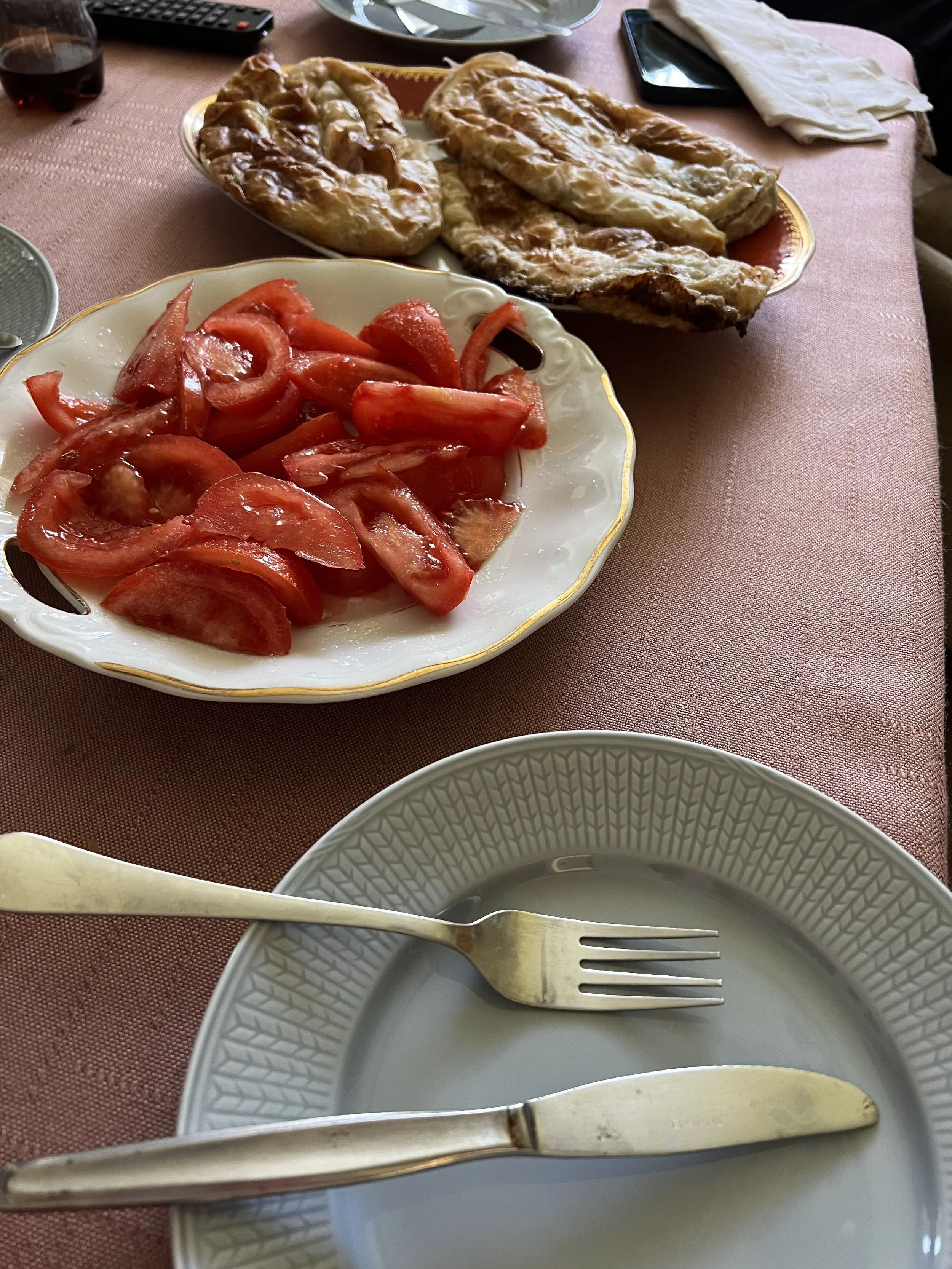 Then of course, we were hungry when we got home, so we bought some burek and ate with tomato. And yogurt.
