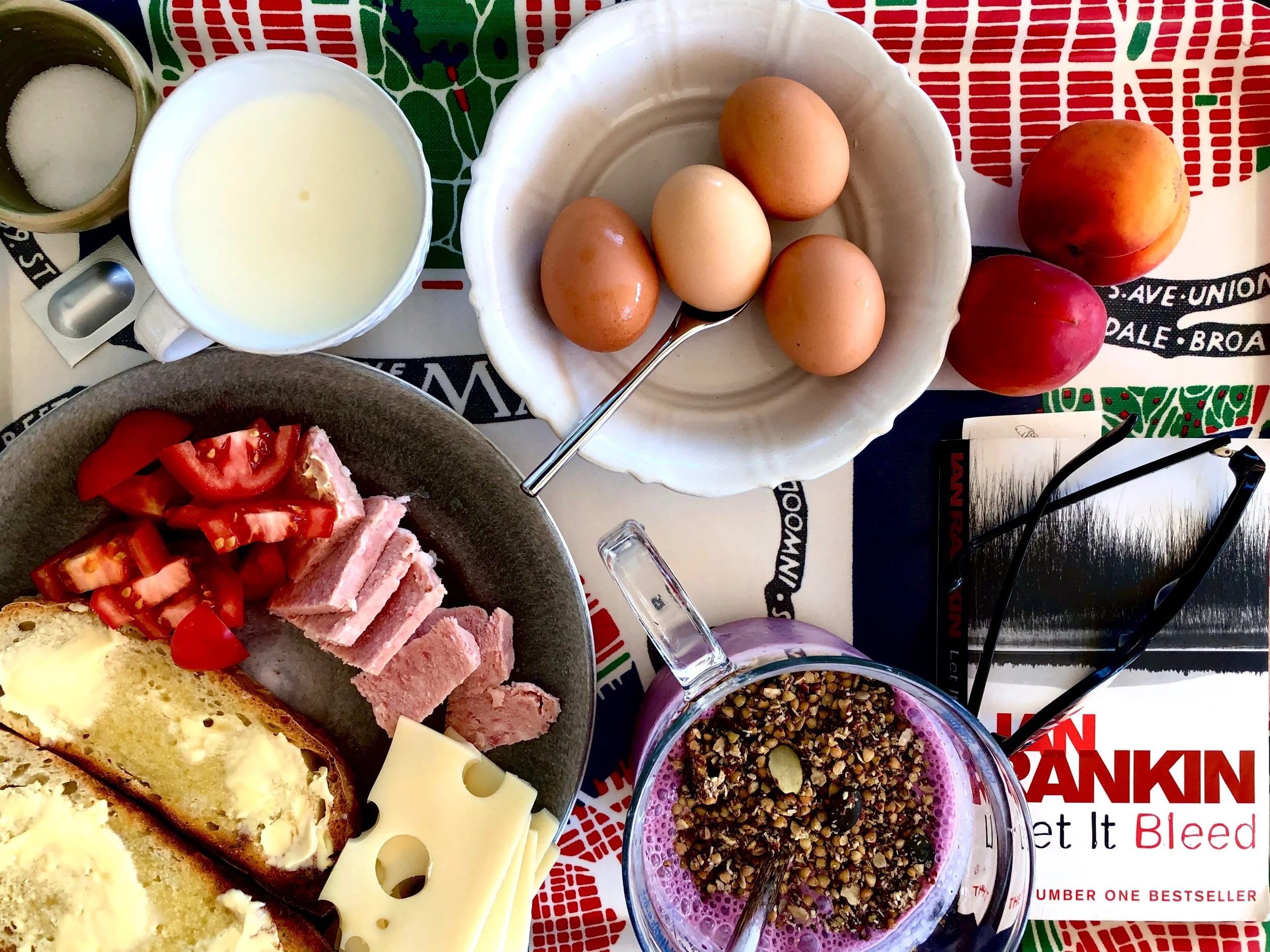 Beroende på väder så är vi antingen uppe tidigt (soligt och varmt) för att sporta eller så tar vi det lite lugnare (regnigt och kallt) och äter ibland (oftast) frukost i sängen. Så mysigt.